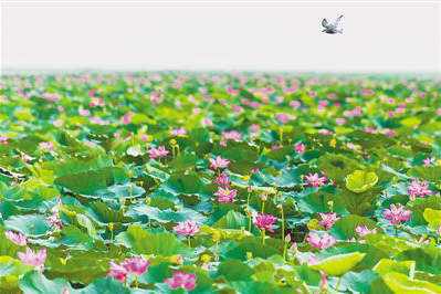 鸟翱翔 荷飘香